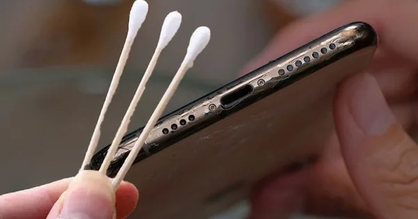 Hãy cẩn thận lau sạch toàn bộ thân máy, đặc biệt là xung quanh các cổng kết nối như cổng sạc Lightning, loa, và micro. Điều quan trọng cần lưu ý là không nên lắc mạnh điện thoại hoặc cố gắng thổi vào các cổng. Việc này có thể đẩy nước sâu hơn vào bên trong các linh kiện.