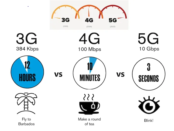 Về mặt lý thuyết, tốc độ tải xuống mà 5G mmWave có thể đạt được lên đến hàng gigabit mỗi giây (Gbps), một con số ấn tượng so với tốc độ tối đa của mạng 4G LTE (thường chỉ vài trăm megabit mỗi giây – Mbps) và thậm chí còn nhanh hơn đáng kể so với các băng tần 5G sub-6GHz hiện tại.