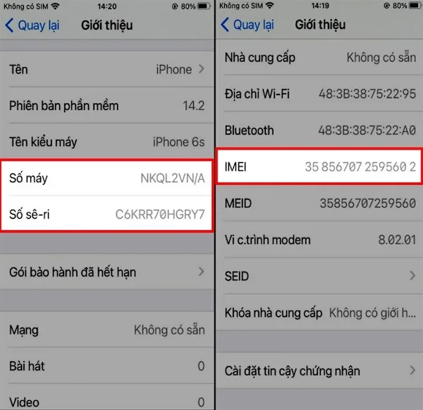 Bạn có thể tìm thấy số IMEI bằng cách bấm *#06# trên trình gọi điện hoặc trong phần Cài đặt > Cài đặt chung > Giới thiệu. Sau đó, truy cập trang web https://www.google.com/search?q=checkcoverage.apple.com và nhập số IMEI hoặc Serial vào để kiểm tra.