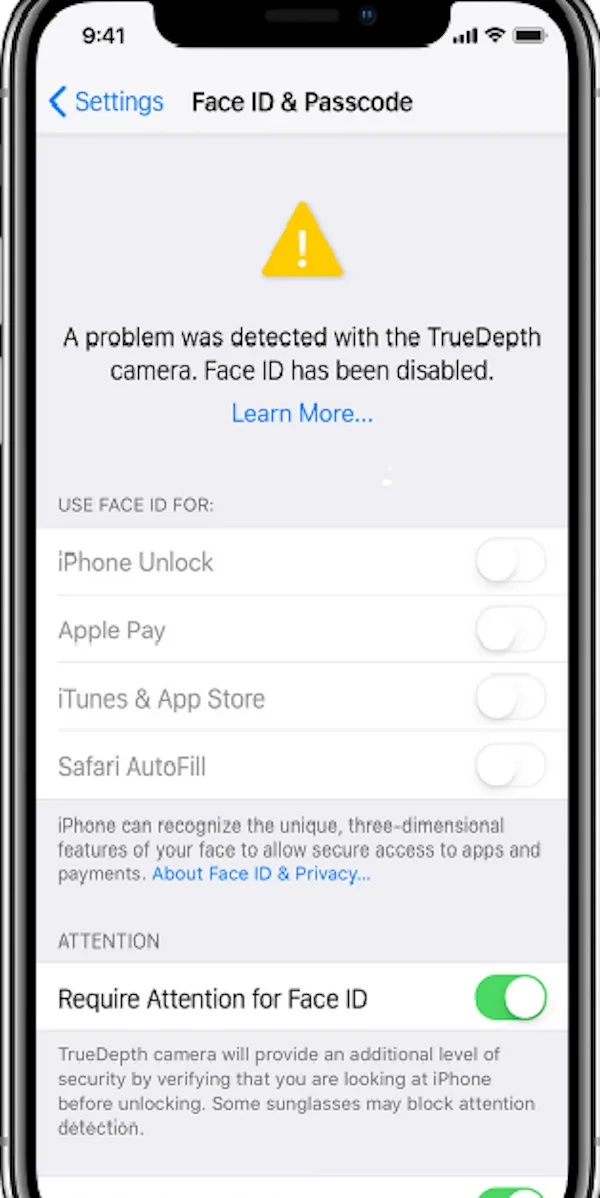 Khắc phục các lỗi phần mềm có thể gây ra sự cố Face ID.